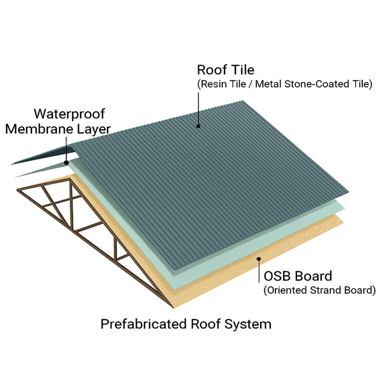 يُصنع نظام السقف الجاهز لدينا من هيكل فولاذي مجلفن عالي الجودة، وألواح سقف مطلية بألوان مختلفة، مع إمكانية إضافة طبقات عزل حراري. توفر هذه المواد متانة فائقة، ومقاومة عالية للعوامل الجوية، وكفاءة عالية في استهلاك الطاقة للمنازل المعيارية والجاهزة.